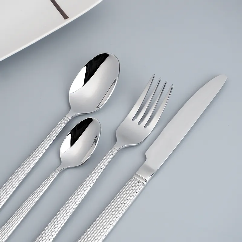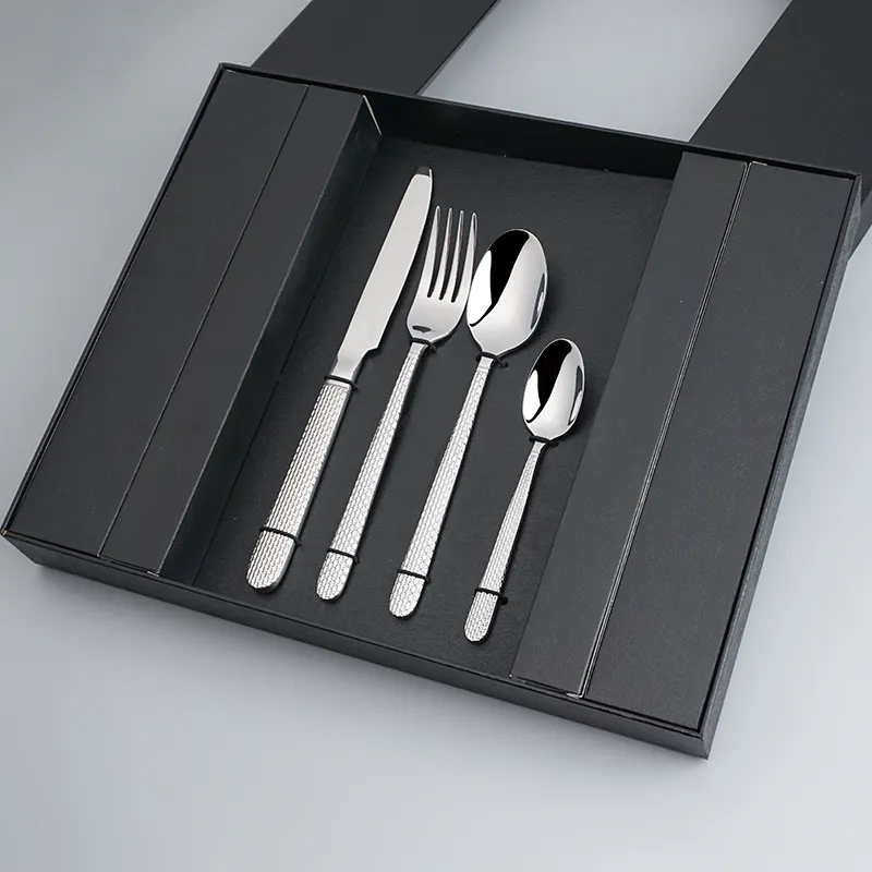 طقم أدوات مائدة زفاف مصقول كالمرآة الفاخر طقم أدوات مائدة زفاف ممتازة سكين شوكة ملعقة 4 قطع مع علبة هدايا
