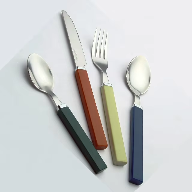Fabrik Großhandel Edelstahl Supermarkt Förderung Kunststoffgriff Besteck Set 24pcs Löffel Gabel Messer Teelöffel